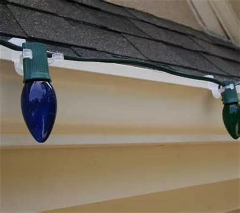 If you’d rather attach the light clips directly to your gutters, you still have some options. It’s true that many clips won’t work if they position each bulb so that it either points toward the sky or straight out from the roofline (parallel to the ground). That’s because of Gutter Helmet’s nose-forward design which extends slightly over the front edge of the gutter. However, you can purchase clips that direct the bulb either straight down toward the ground or at a 45 degree angle downward from the front gutter surface. These won’t bump up against the overhanging part of your gutter guards.